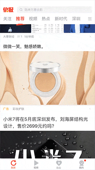 沉浸视频流:点击任意视频后进入沉浸视频流,滑动观看,则出现沉浸视频广告。视频全屏播放,感官刺激最大化,外部干扰少。